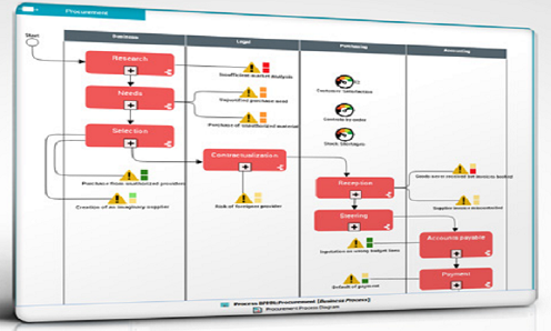 Mega Risk Mapper offre la capacité aux architectes d’entreprise, aux contrôleurs ainsi qu’aux process designers et leurs parties prenantes, d’enrichir leur modèles de processus avec des risques et des contrôles et leur documentation associée.