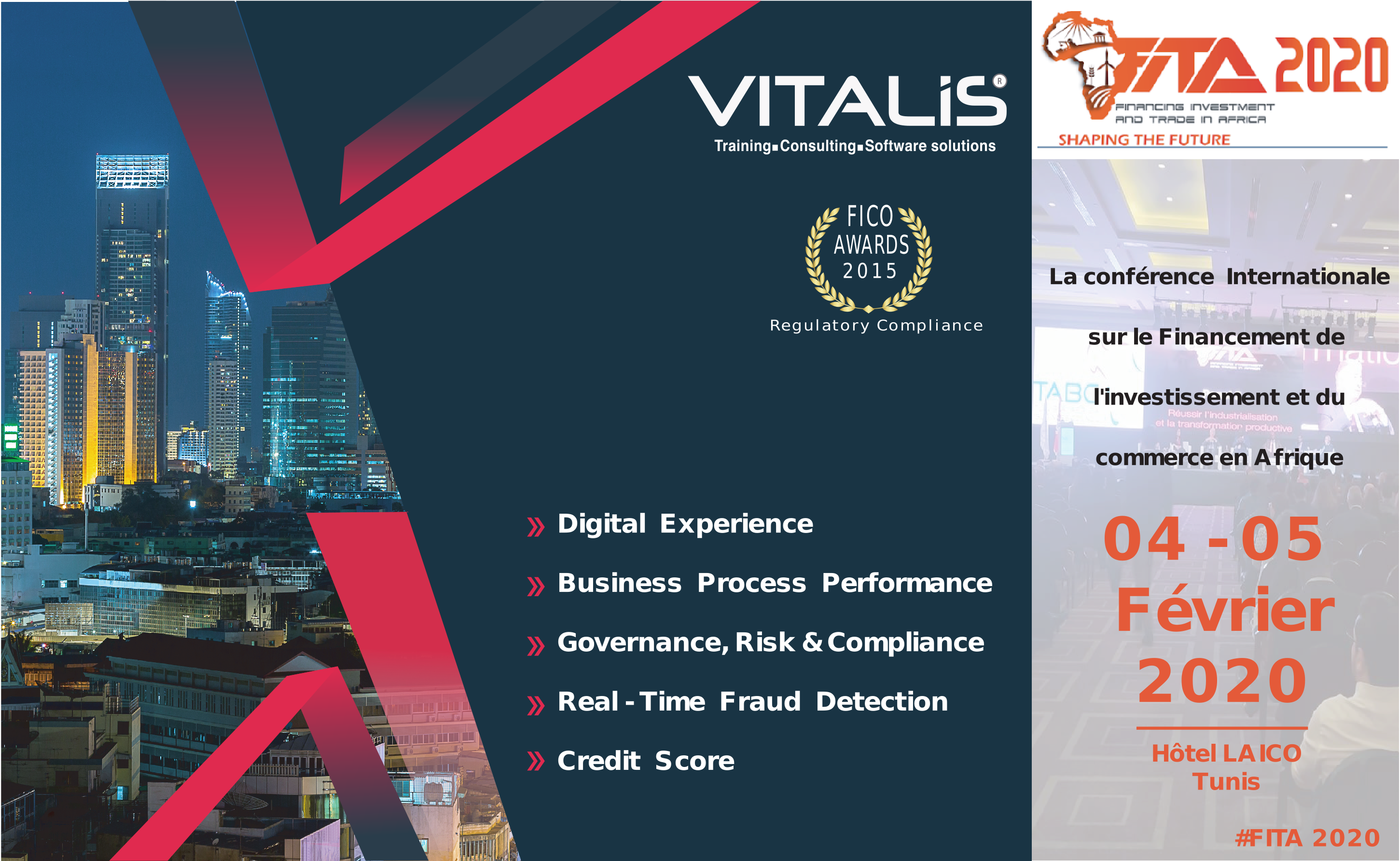 " La Tunisia-Africa Business Council (TABC) organise la 3e édition de la conférence internationale sur le financement de l'investissement et du commerce en Afrique(FITA 2020) " 04 Février 2020 - De 08 h00 à 17 h Hôtel LAICO Tunis, Programme FITA 2020 sera l'événement fédérateur, catalyseur de toutes les solutions de mise en relation et de financement des économies africaines. FITA 2020 constituera ce carrefour, lieu d'échange, de partage, de réseautage entre l'Afrique anglophone, francophone, lusophone et arabe et permettra :