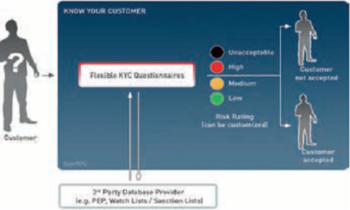 Le processus de la réception du client représente le premier pas dans l'activité clientèle. A cause des exigences légales les banques doivent saisir des informations des personnes naturelles et morales ainsi que de leurs bénéficiaires effectifs lors de la réception de client. Elles doivent les enregistrer de manière sécurisée et non modifiable et les utiliser pour la classification du risque. Si la relation client représente un risque trop élevé la banque ne doit pas conclure la relation d'affaires. A cette fin Siron ® KYC utilise des bases de données de fournisseurs tiers pour lesquelles existent des interfaces de listes de sanctions et de surveillance, des données PEP et des informations sur les bénéficiaires effectifs des entreprises.